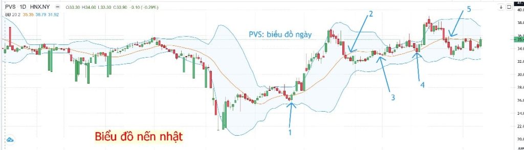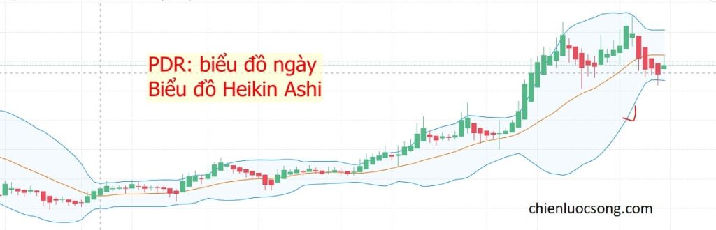 Phía dưới là PDR chúng ta cũng thấy rõ cách nó phản ứng với đường trung tâm của Bollinger Band. Thậm chí không cần nhìn khối lượng ta cũng có thể dự đoán đúng được phần nào hướng đi của giá.